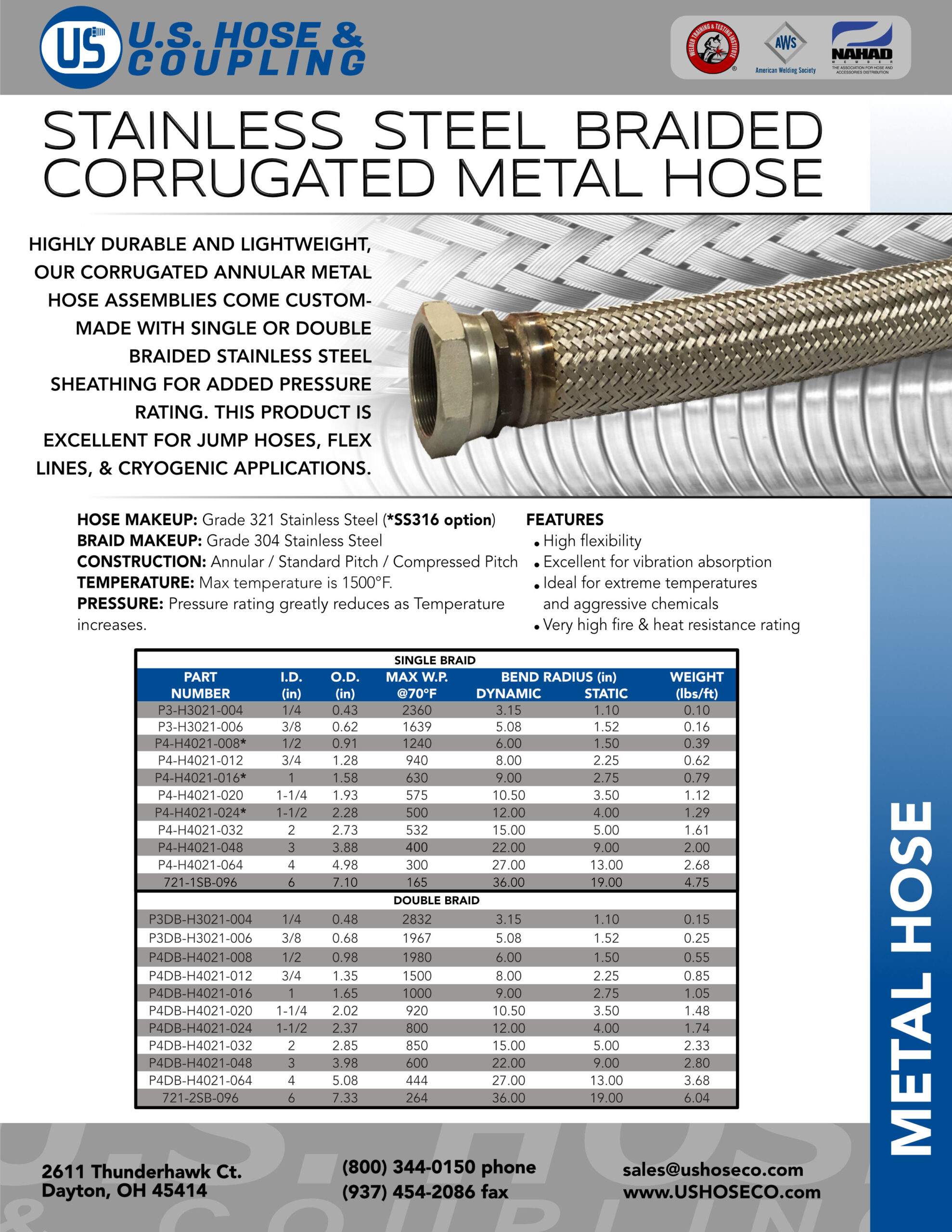 Download our METAL HOSE FLYER (~5 MB) for more detailed information on U.S. Hose & Coupling's Metal Hose Division.